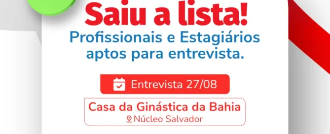 Saiu a lista dos profissionais e estagiários aptos para entrevista. [...]