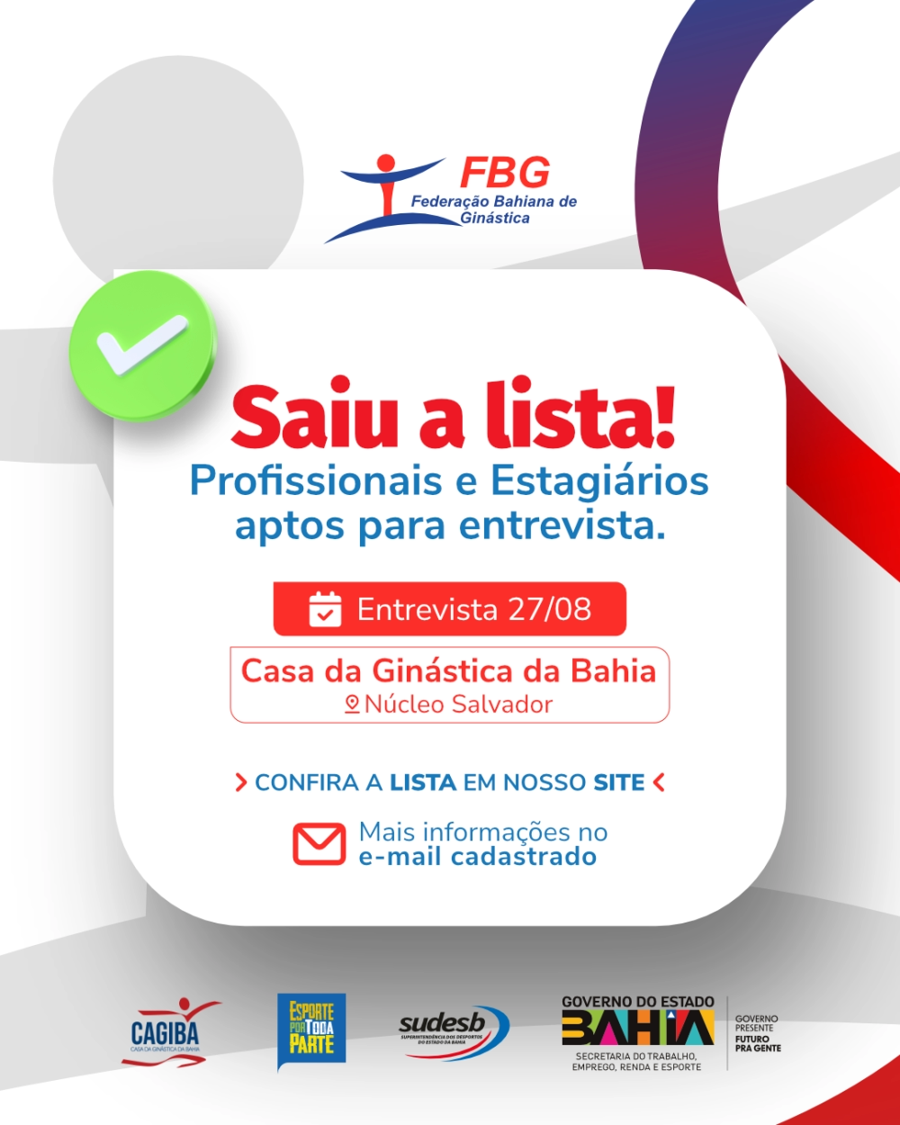 Resultado final da Seleção para vagas de profissionais da Federação Bahiana de Ginástica