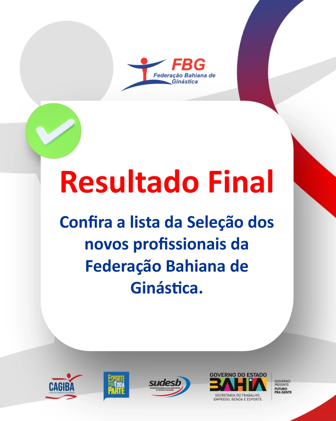 Resultado final da Seleção para vagas de profissionais da Federação Bahiana de Ginástica